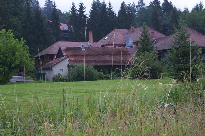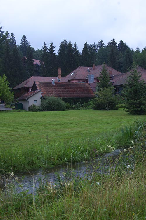 ようやくホテル近くに戻ってきて。 レストランと小川を含めて1枚。