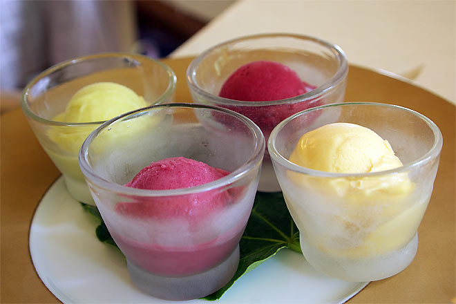 フルーツソルベの盛り合わせ。 どれも、それほどぱっとするものではありません。