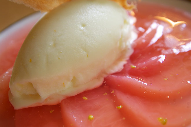 こちらはソルベとうってかわって、素晴らしい一皿でした。 まあ、想像の範囲内といえば、そうかも知れませんが。
