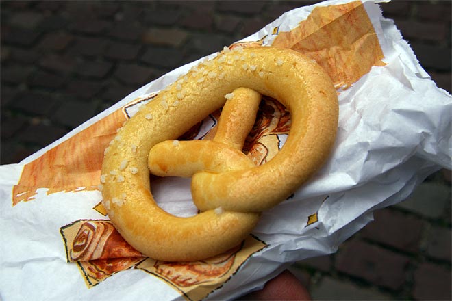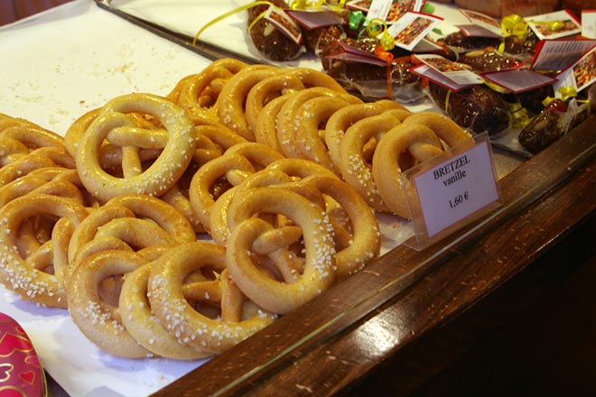 ドイツに近いと言うこともあり、あちこちでプレッツェルが売られております。