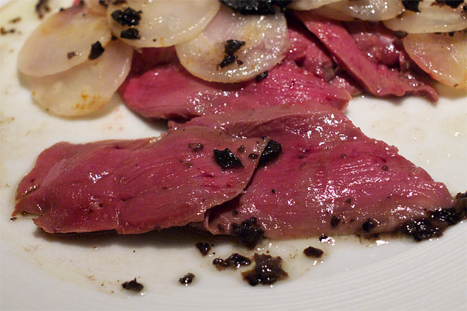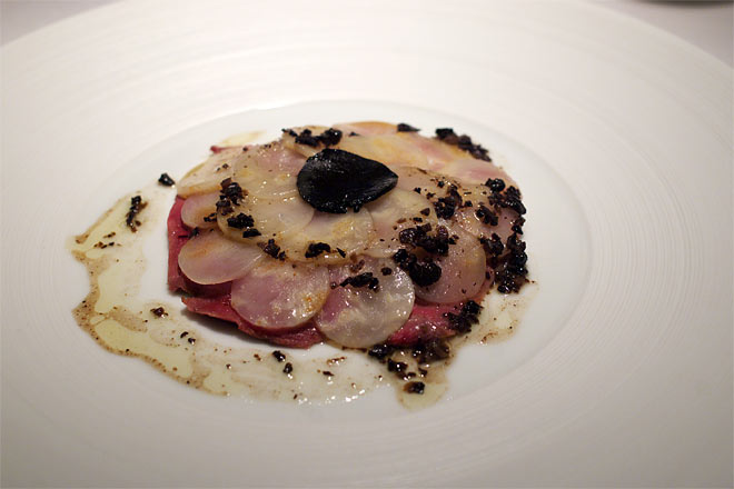 夏トリュフと鳩のカルパッチョ 根セロリ添え