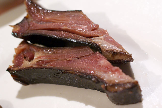 香ばしさはあるものの、肉は固め。 まあ、ジャーキー感覚で酒をやりながら、かぶりつくぐらいで。