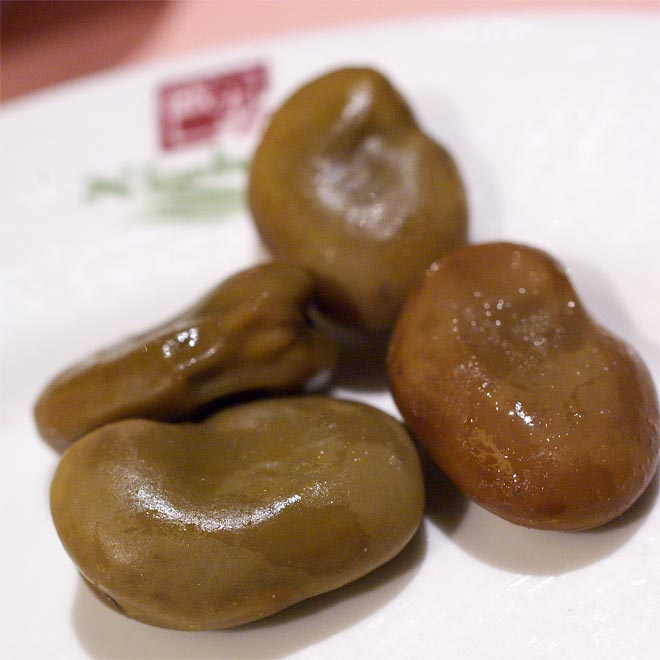 名物の「茴香豆」です。 空豆を塩と醤油とウイキョウで煮たもので、風味がなんともいえません。