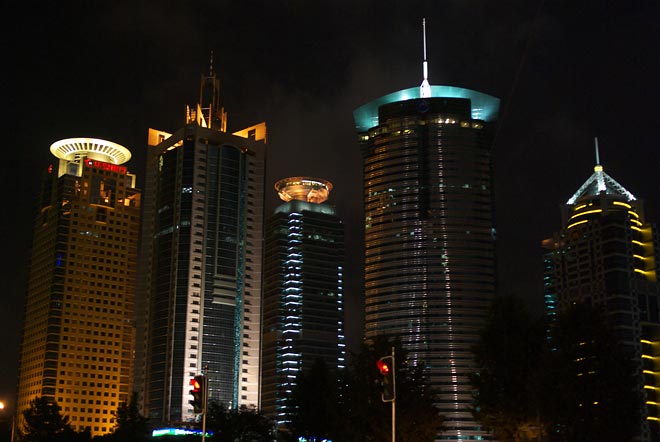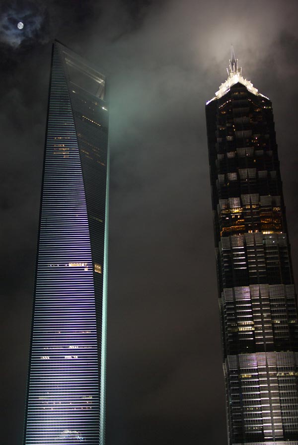 やはり森ビルととなりの金茂大厦。 金茂大厦には昼間登っておりますので、また別途記載。