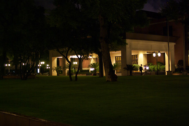 写真は宿泊しているホテルの貴賓室の玄関。 ライトアップ。