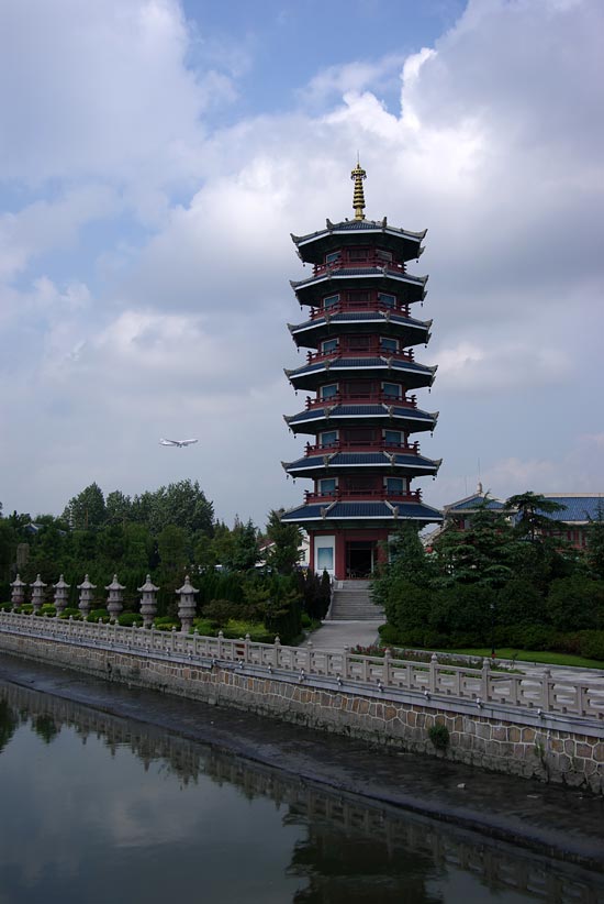 写真は奥に飛行機が飛んでいるのを一緒に。 この塔は七宝とは関係ないのかな??
