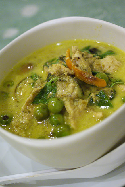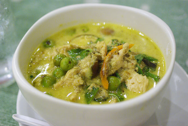 メニューは、辛さマーク2つのグリーンカレーとご飯を中心に、サラダをひとつという路線で。