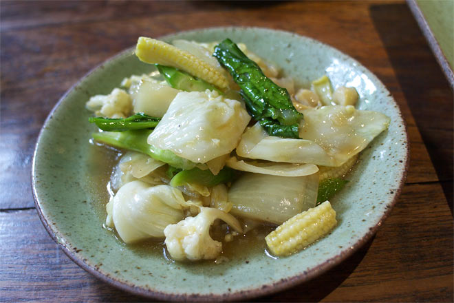 コームーヤン。 私がタイっぽい料理を。 奥様が中華っぽいメニューを。