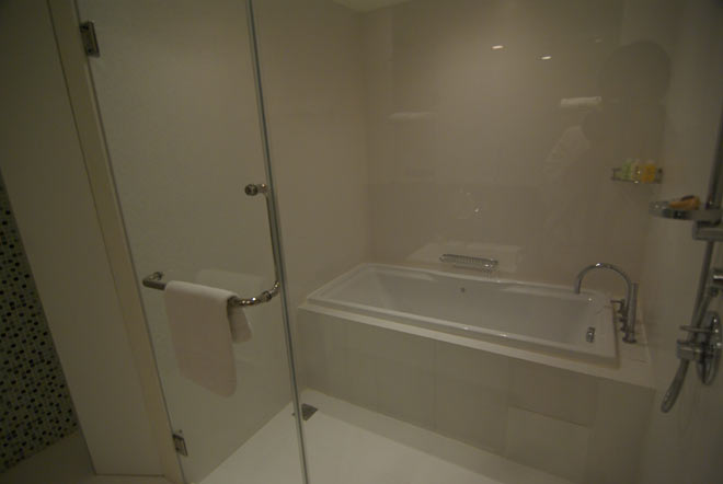 暗めですが、シャワーとバスタブ。 バスタブは結構大きめでしょうか? 結局私は一度も使わず(笑)