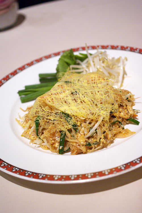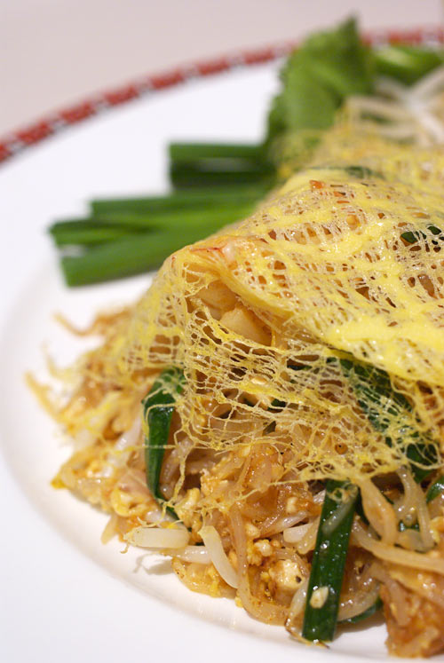 もやし、にら?、ライムなど。 海老をつかったパッタイ。
