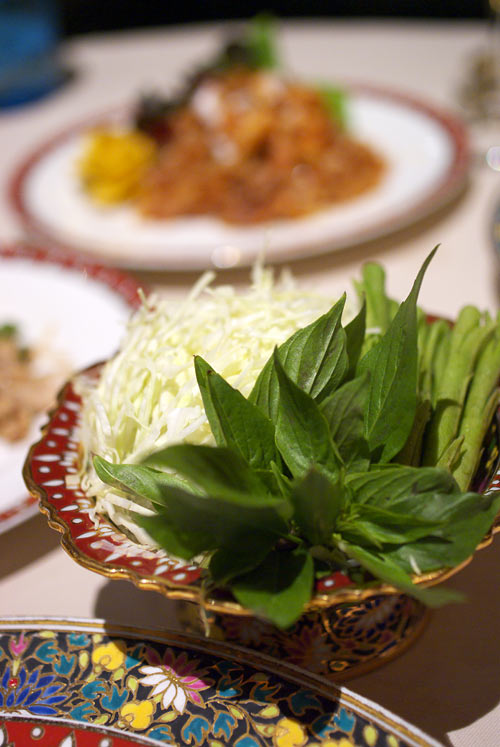 こちらは、上の料理の付け合せかな? ホテルということもあり、上品な盛り付け。 ベンジャロン焼きの器も美しい。