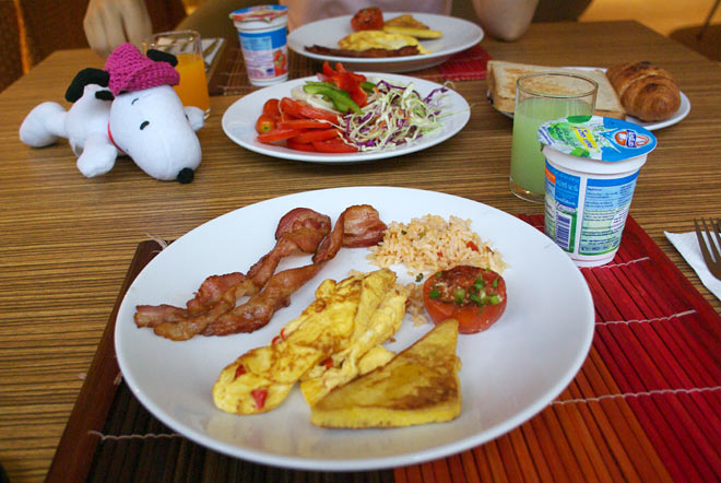 朝食はもちろんブッフェ。 卵やベーコンなんかは注文スタイルになりますので、アツアツで。