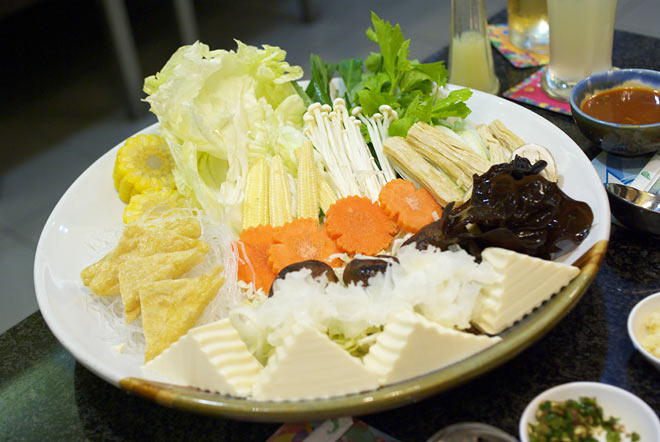 干ししいたけ、ふくろだけ(生)、人参、ゆば、ヤングコーン(美味)、とうもろこし(最低)、春雨、えのき、セロリ葉、油揚げ、ねぎ、豆腐(絹)、ささみたいな葉、きくらげ、キャベツ。