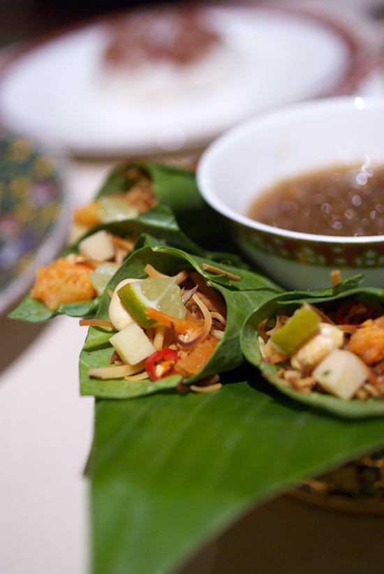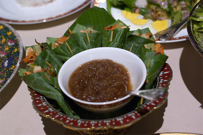 詰まっているのは、ライム、干しえび、しょうが、揚げ麺?、ピーナッツなど。