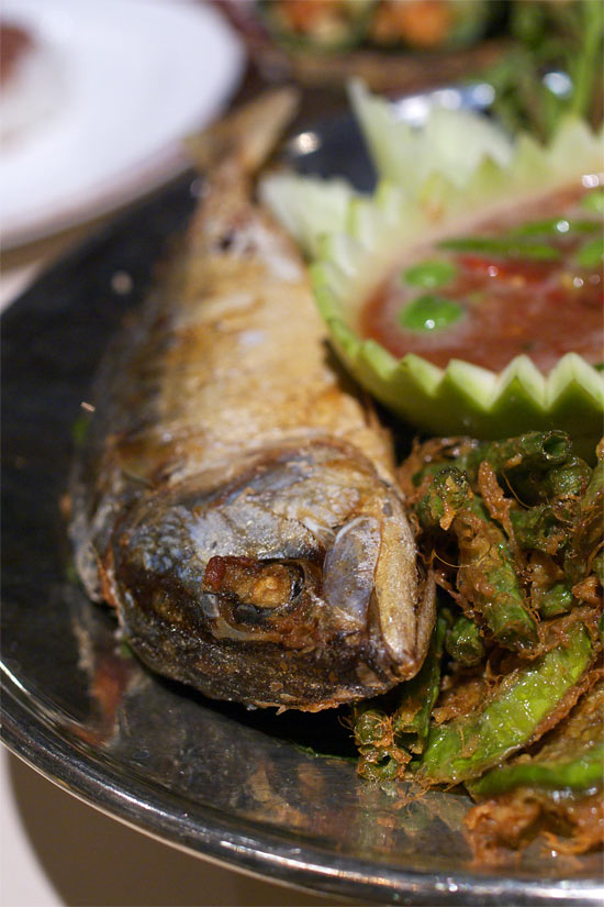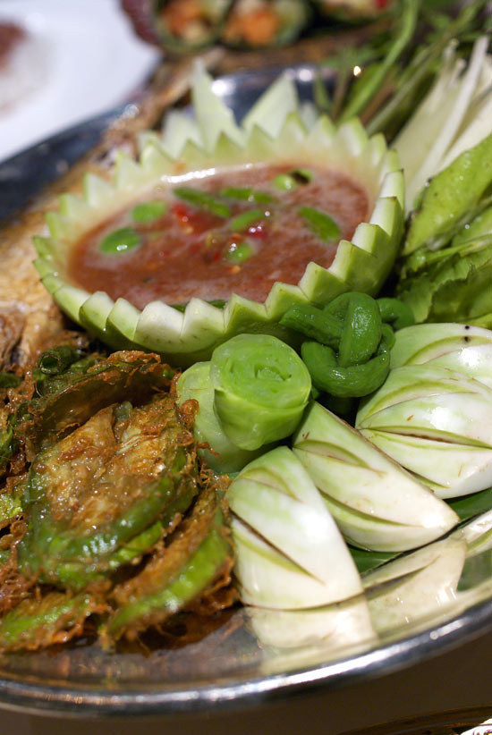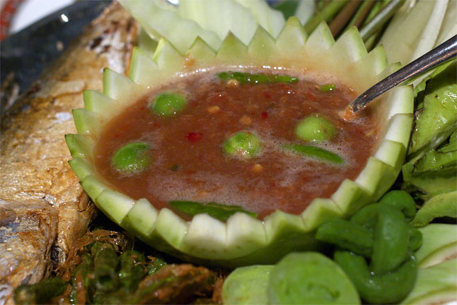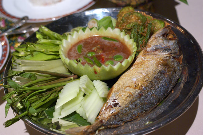 野菜や肉をつけていただく料理をナムブリックガビといいますが、今日はその魚版をいただいてみました。