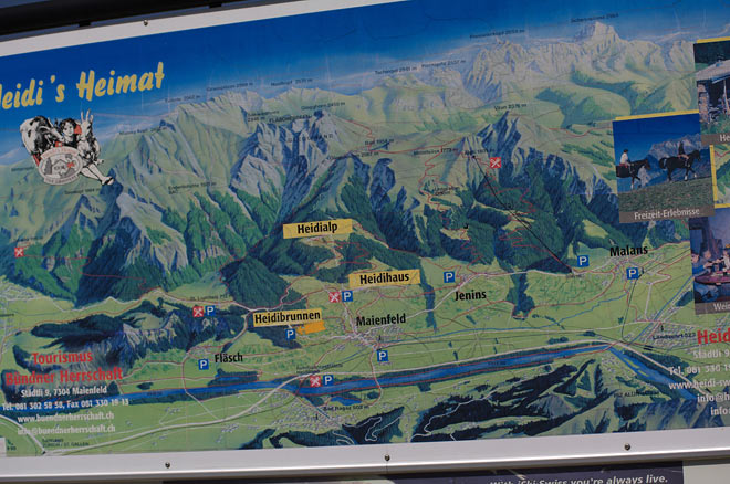 地図中央にあるHeidialpは夏に使われたという小屋があるそうですが、かなり長時間歩かない・・・ということで今回はハイジの家まで。