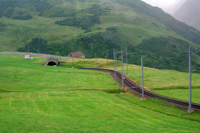 以前は列車もこのフルカ峠 (Furuka-pass) を越えていましたが、