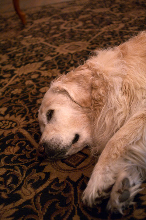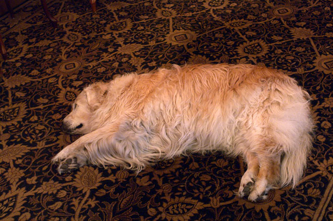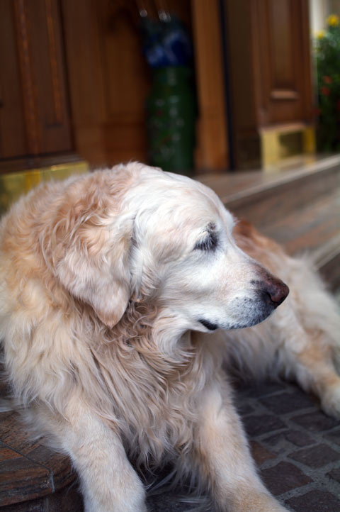 ロビーに大型犬がどっしり。 結構な老犬の模様で、おとなしくて寝ております。