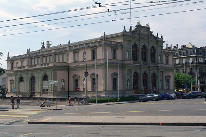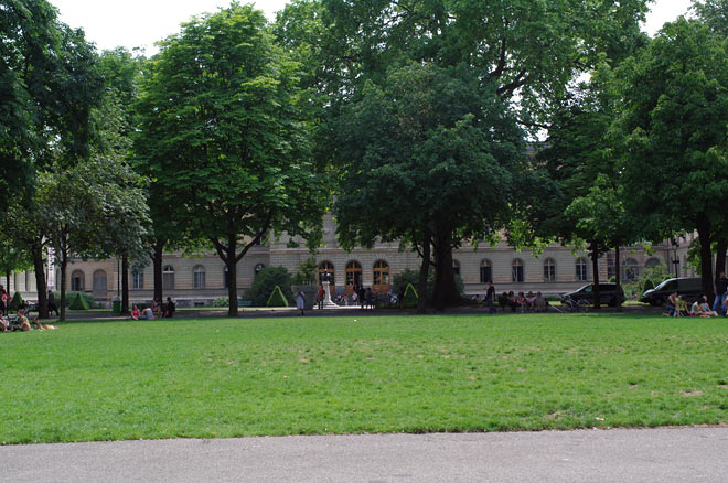 ジュネーブ大学前のバスチヨン公園内あるらしいので、公園前でバスを止めて。