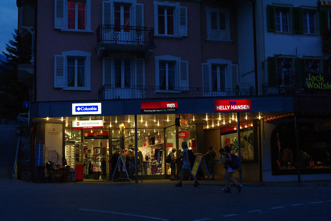 実はこの日はグリンデルワルトの夏祭りの日ということもあり、バスは街はずれで止めなければならず、歩いてホテルまで移動します。