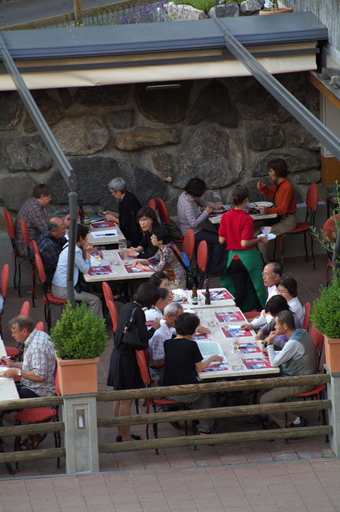 目の前のイタリアンの翌日の夕食風景。 どっかのツアー客でしょうか?