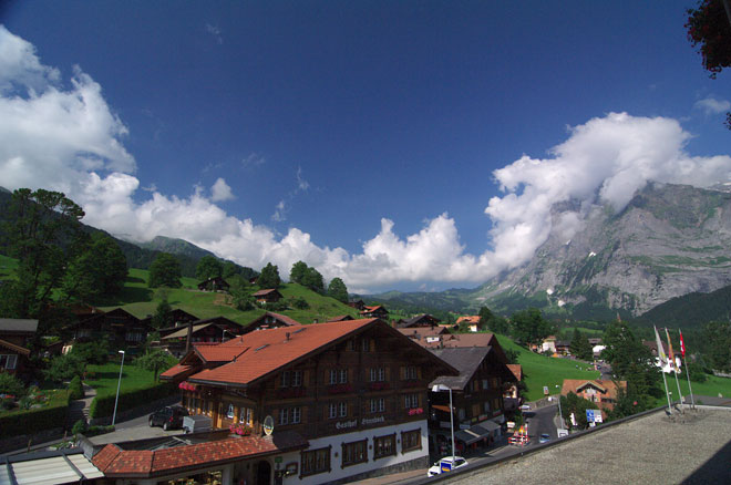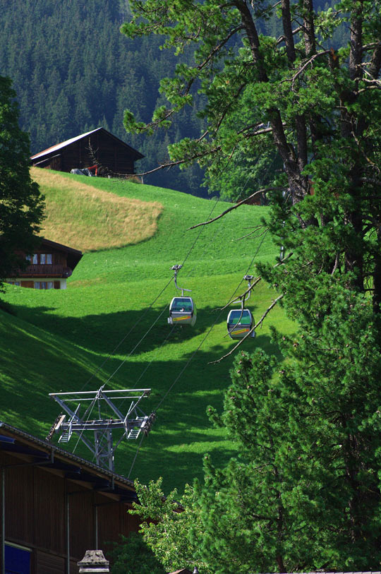 フィルスト展望台へのロープウェーですね。 部屋から望遠で撮るとこんな感じで。