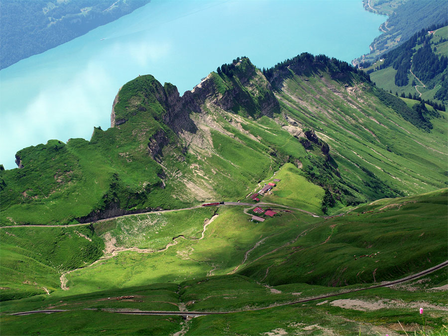 これは上り始めたところ。 ブリエンツ湖が目の前に広がっていきます。