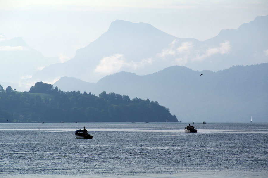 見える山はピラトゥス山(Pilatus):標高2132メートルだと思われます。