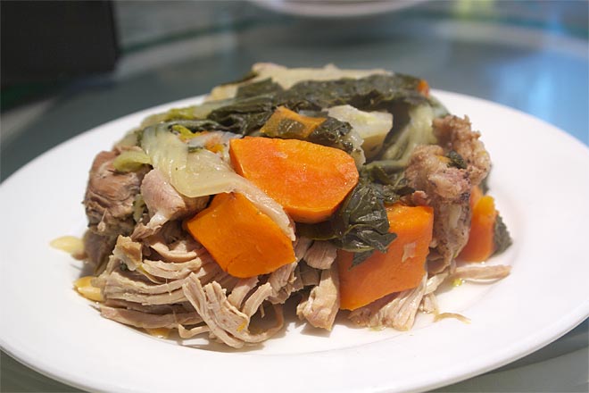 具は下の写真のように、白菜、にんじん、肉、豆など。
