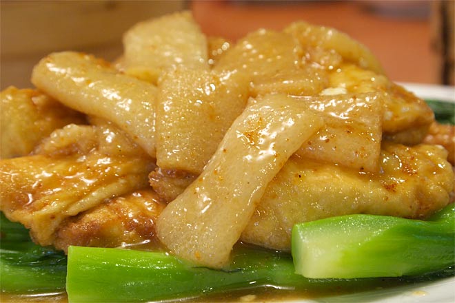 まあ、予想通りというか普通の味わい。 蟹肉、ふかひれ少々、干ししいたけなど。