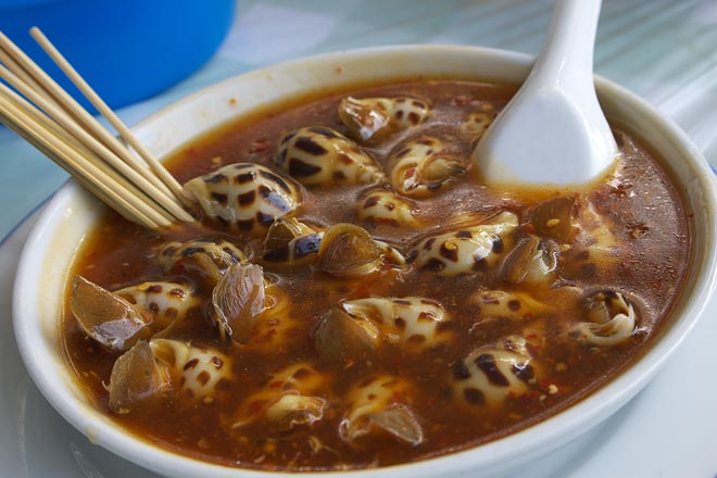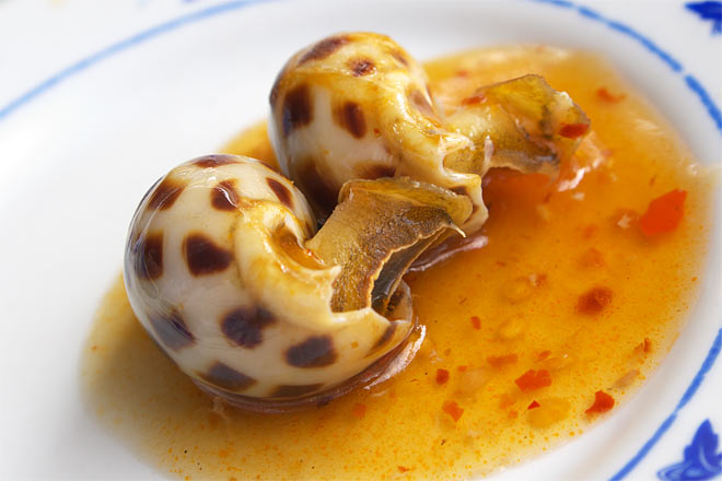 貝のチリソース煮