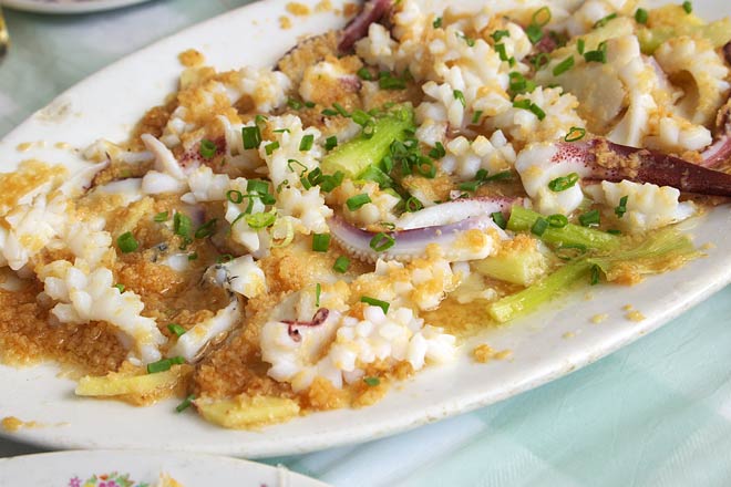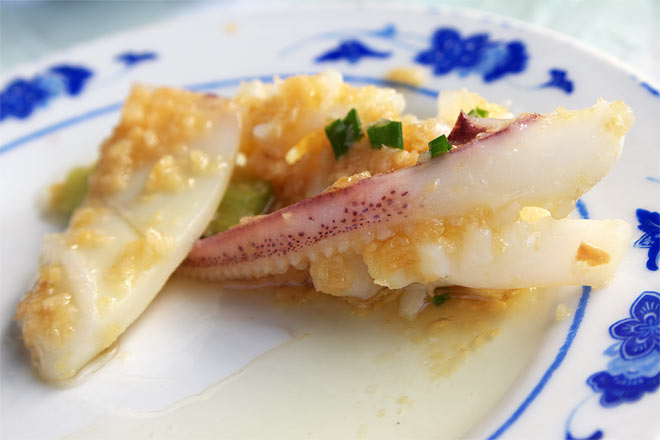 イカのネギ、ニンニク炒め