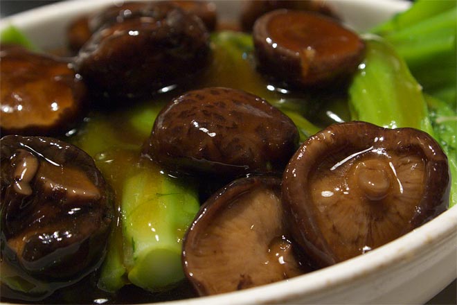 干ししいたけの煮込み。 あんかけ。 非常にアツアツ。