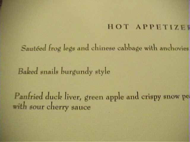 おすすめである。 温かい前菜から。 カエルは自体は割とあっさり目なのであるが、