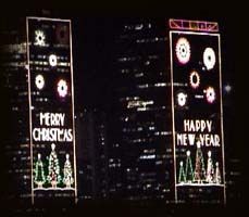 沢山のホテルやビルの壁一面に様々なイルミネーションが飾られています。